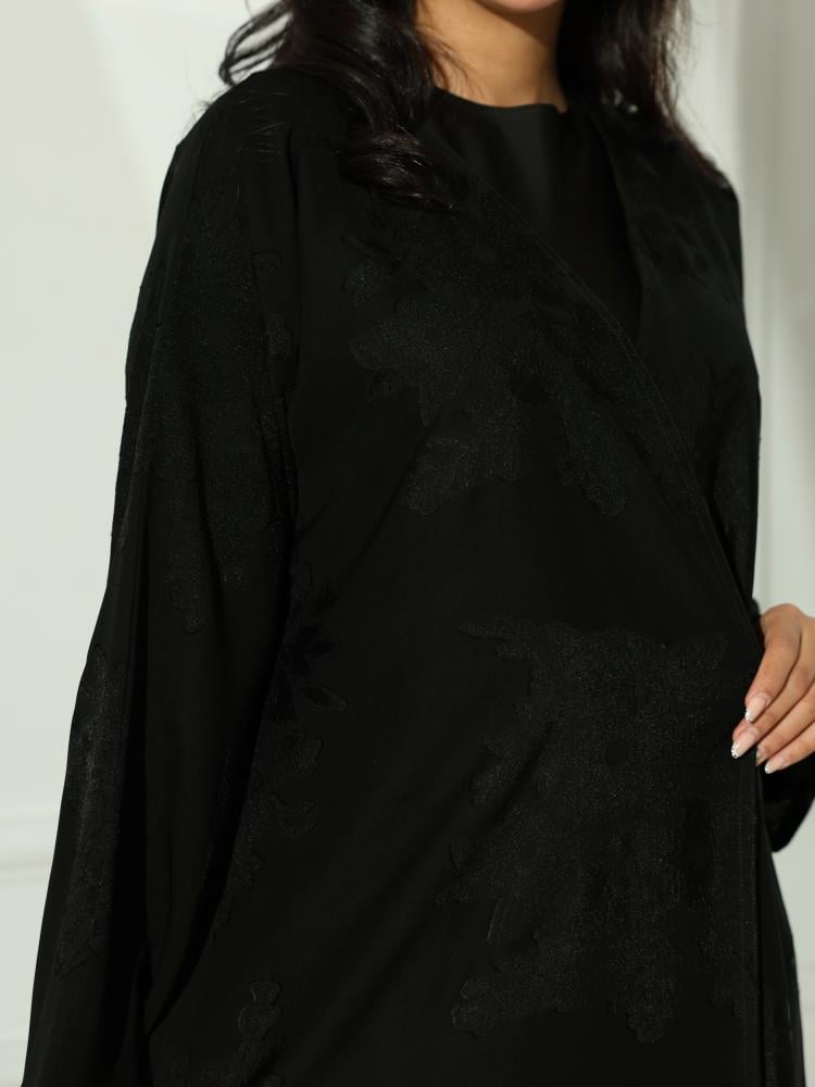 - اللون أسود كلاسيكي يضفي لمسة من الفخامة، ويسهّل تنسيق العباية مع أي إكسسوارات أو أحذية، كما يجعلها مناسبة لكل المناسبات الرسمية أو الخروج اليومي.
